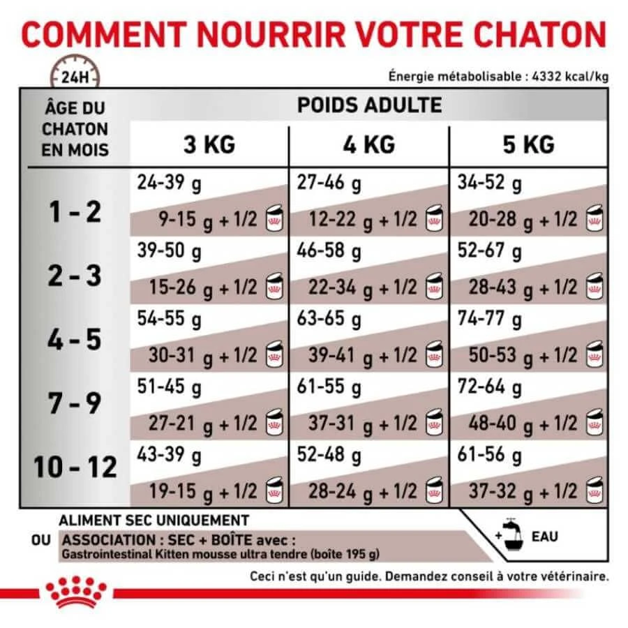 Royal Canin Veterinary Chat Gastro Intestinal Kitten et une alimentation complète et équilibrée recommandé pour les chatons de la naissance à l’âge adulte en cas de diarrhée aiguë et chronique (dont diarrhée de sevrage)… Ce produit est adapté pour les chattes en gestation et lactation.