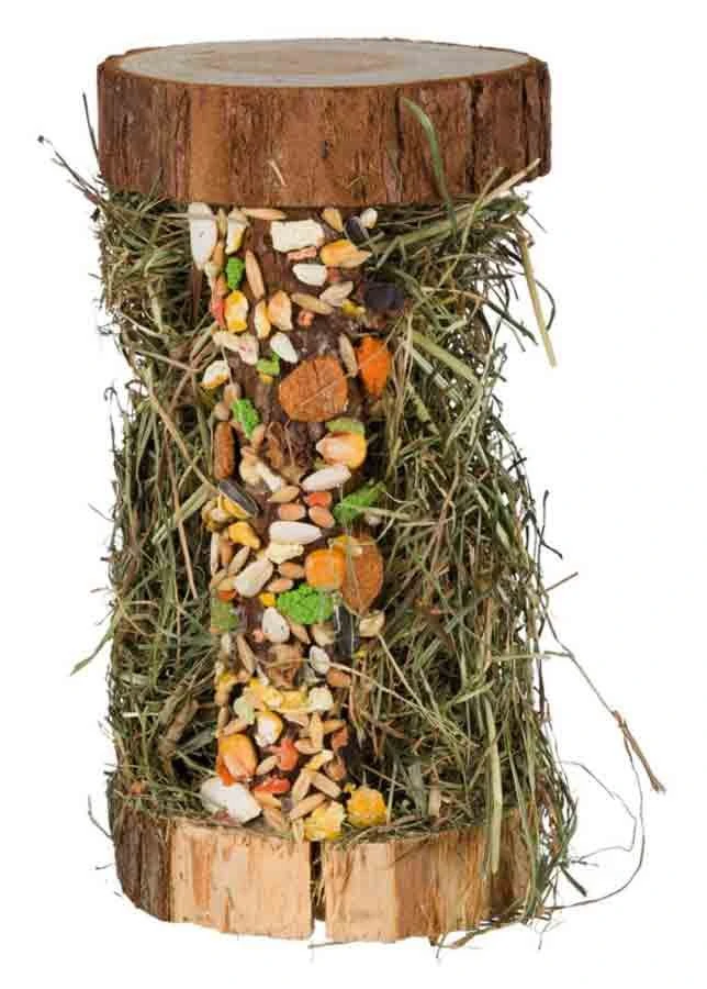 Cette tour en bois naturel remplie de foin d’alpage et de barre croustillante occupera votre petit compagnon tout en lui offrant un délicieux goûter pour son plus grand plaisir.